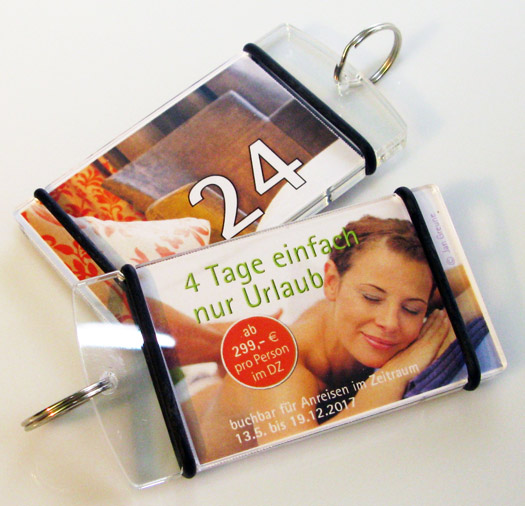 Jeder Gast nimmt mehrmals täglich seinen Hotel-Schlüsselanhänger in die Hand ...